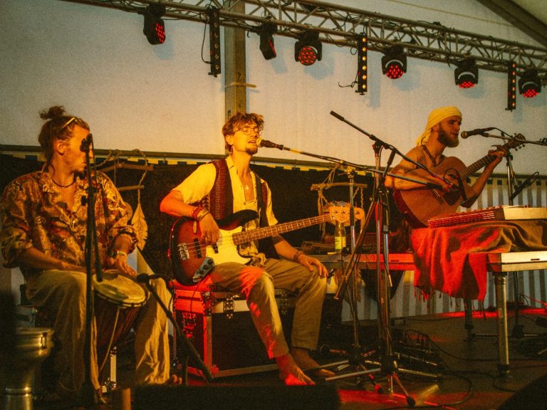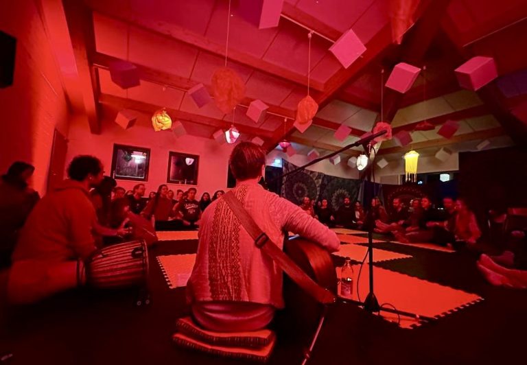 Wir gestalten den Raum mit verschiedenen Instrumenten, Stimme, Trommeln und lenken das große Schiff auf ihrer Reise durch innere Welten.